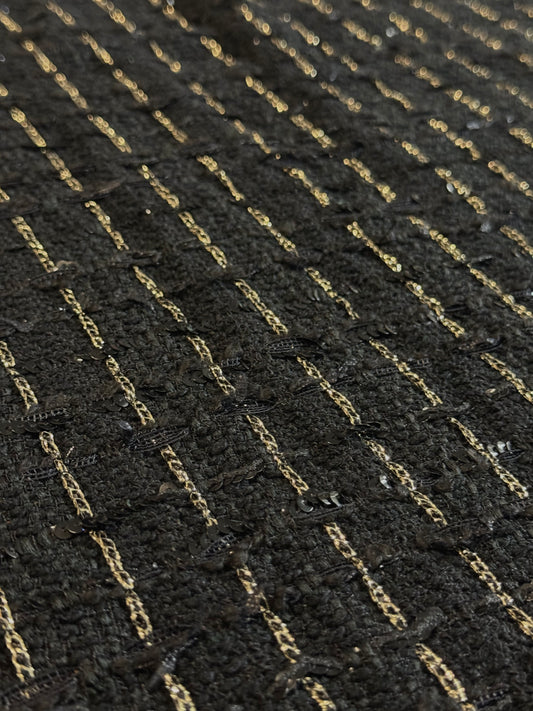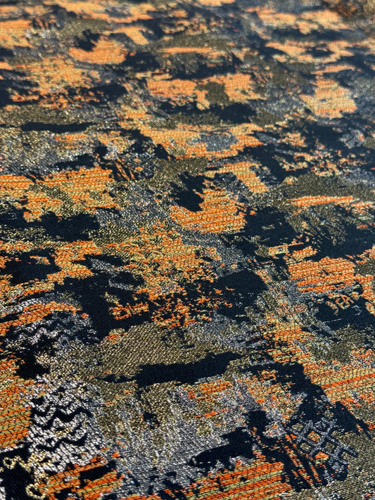 Tissu effet peinture noir orange doré - L: 1,60 m