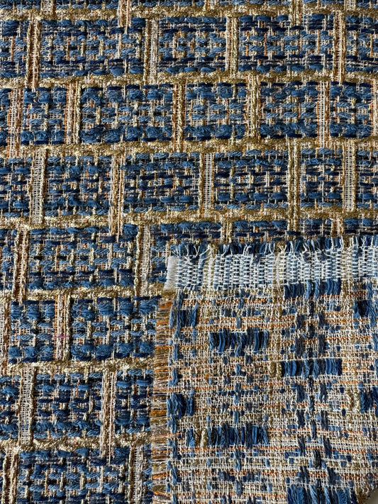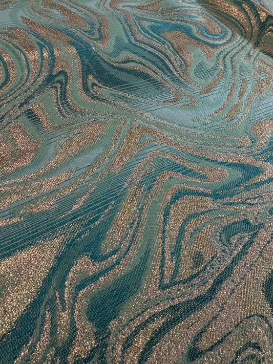 Tissu abstrait vert d’eau et doré - L: 1,80 m