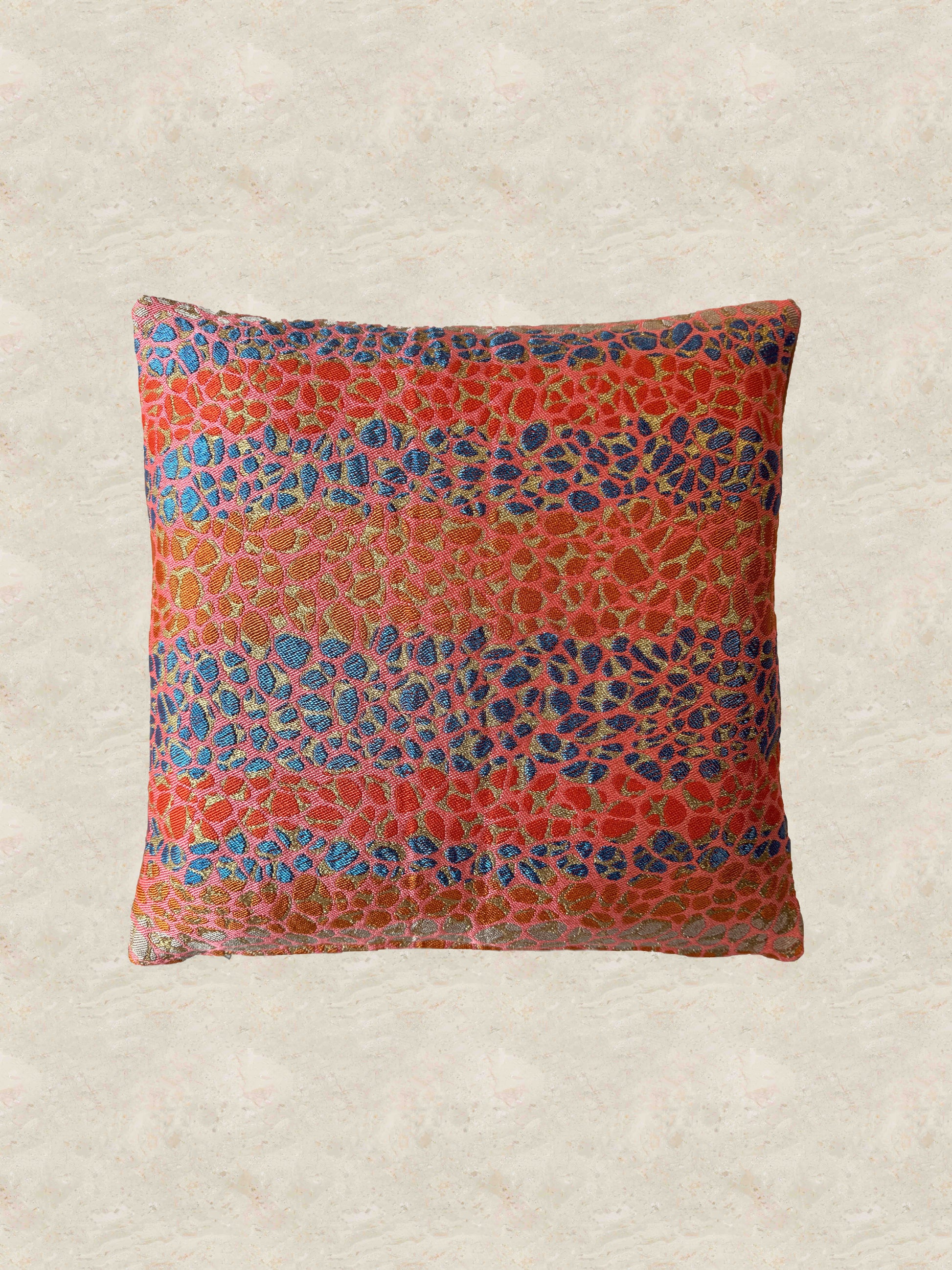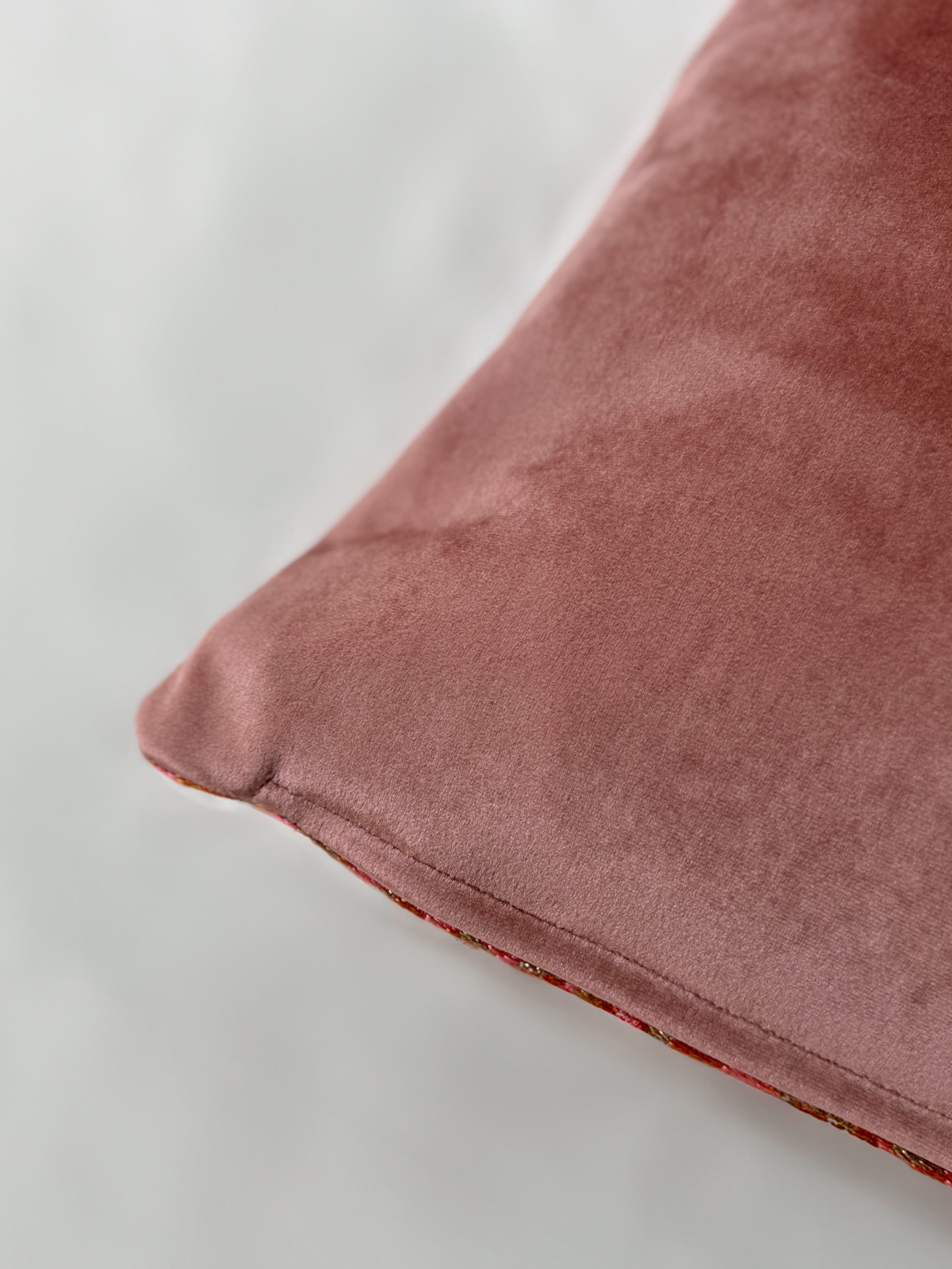 Housse de coussin tissé à motif abstraite, dos en velours rose poudré - 50cm x 50cm
